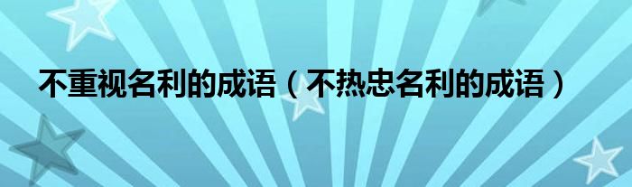大家好,小生來為大家講解下。不重視名利的成語,不熱忠名利的成語很多人還不知道,現(xiàn)在讓我們一起來看看吧!