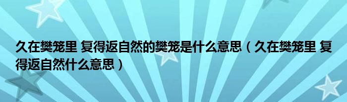 大家好,小生來為大家講解下。久在樊籠里 復(fù)得返自然的樊籠是什么意思,久在樊籠里 復(fù)得返自然什么意思很多人還不知道,現(xiàn)在讓我們一起來看看吧!
