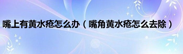 大家好,知識小編來為大家解答以上的問題。嘴上有黃水瘡怎么辦,嘴角黃水瘡怎么去除很多人還不知道,現(xiàn)在讓我們一起來看看吧!