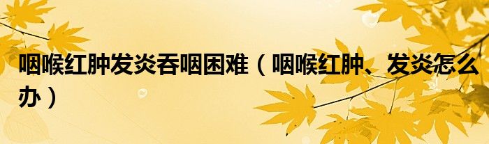 摘要大家好,知識小編來為大家解答以上的問題。咽喉紅腫發(fā)炎吞咽困難,咽喉紅腫、發(fā)炎怎么辦很多人還不知道,現(xiàn)在讓我們一起來看看吧!如果患者