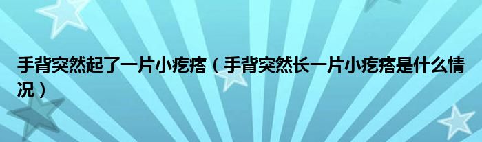 摘要大家好,知識(shí)小編來(lái)為大家解答以上的問(wèn)題。手背突然起了一片小疙瘩,手背突然長(zhǎng)一片小疙瘩是什么情況很多人還不知道,現(xiàn)在讓我們一起來(lái)看看
