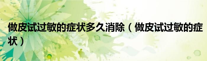大家好,知識小編來為大家解答以上的問題。做皮試過敏的癥狀多久消除,做皮試過敏的癥狀很多人還不知道,現(xiàn)在讓我們一起來看看吧!