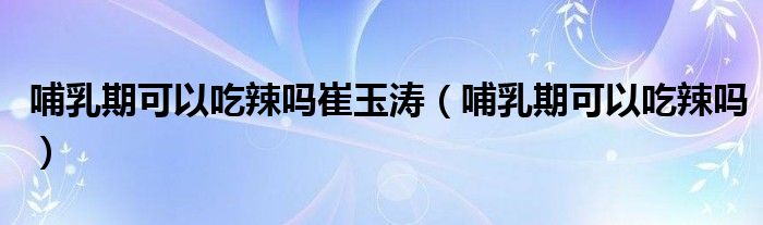 大家好,知識小編來為大家解答以上的問題。哺乳期可以吃辣嗎崔玉濤,哺乳期可以吃辣嗎很多人還不知道,現(xiàn)在讓我們一起來看看吧!