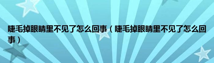 大家好,知識(shí)小編來(lái)為大家解答以上的問(wèn)題。睫毛掉眼睛里不見(jiàn)了怎么回事,睫毛掉眼睛里不見(jiàn)了怎么回事很多人還不知道,現(xiàn)在讓我們一起來(lái)看看吧!