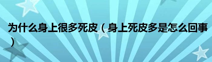 大家好,知識(shí)小編來(lái)為大家解答以上的問(wèn)題。為什么身上很多死皮,身上死皮多是怎么回事很多人還不知道,現(xiàn)在讓我們一起來(lái)看看吧!