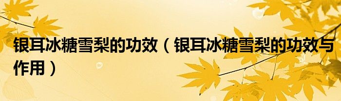 大家好,知識小編來為大家解答以上的問題。銀耳冰糖雪梨的功效,銀耳冰糖雪梨的功效與作用很多人還不知道,現(xiàn)在讓我們一起來看看吧!