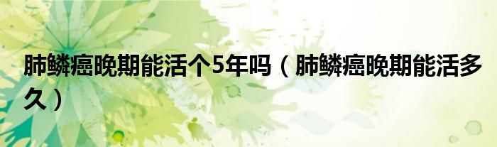 大家好,知識(shí)小編來(lái)為大家解答以上的問(wèn)題。肺鱗癌晚期能活個(gè)5年嗎,肺鱗癌晚期能活多久很多人還不知道,現(xiàn)在讓我們一起來(lái)看看吧!