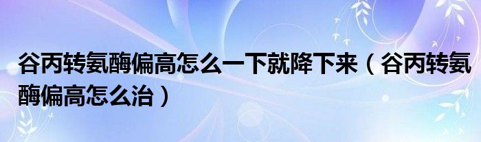大家好,知識小編來為大家解答以上的問題。谷丙轉氨酶偏高怎么一下就降下來,谷丙轉氨酶偏高怎么治很多人還不知道,現(xiàn)在讓我們一起來看看吧!