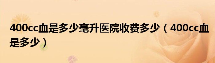 大家好,知識小編來為大家解答以上的問題。400cc血是多少毫升醫(yī)院收費多少,400cc血是多少很多人還不知道,現在讓我們一起來看看吧!
