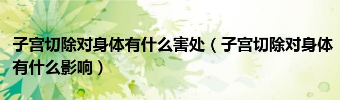摘要大家好,知識小編來為大家解答以上的問題。子宮切除對身體有什么害處,子宮切除對身體有什么影響很多人還不知道,現(xiàn)在讓我們一起來看看吧!