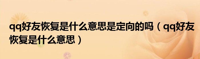 摘要大家好,小育來為大家講解下。qq好友恢復(fù)是什么意思是定向的嗎,qq好友恢復(fù)是什么意思很多人還不知道,現(xiàn)在讓我們一起來看看吧!1、QQ好友