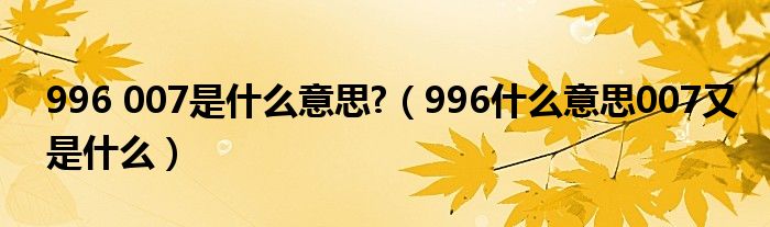 大家好,小育來為大家講解下。996 007是什么意思?,996什么意思007又是什么很多人還不知道,現(xiàn)在讓我們一起來看看吧!