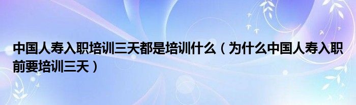 摘要大家好,小育來為大家講解下。中國人壽入職培訓(xùn)三天都是培訓(xùn)什么,為什么中國人壽入職前要培訓(xùn)三天很多人還不知道,現(xiàn)在讓我們一起來看看吧