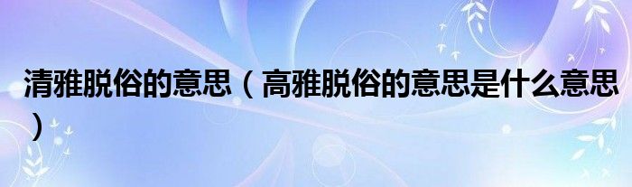 大家好,小育來為大家講解下。清雅脫俗的意思,高雅脫俗的意思是什么意思很多人還不知道,現(xiàn)在讓我們一起來看看吧!