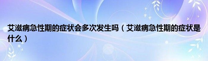 摘要大家好,知識(shí)小編來(lái)為大家解答以上的問(wèn)題。艾滋病急性期的癥狀會(huì)多次發(fā)生嗎,艾滋病急性期的癥狀是什么很多人還不知道,現(xiàn)在讓我們一起來(lái)看