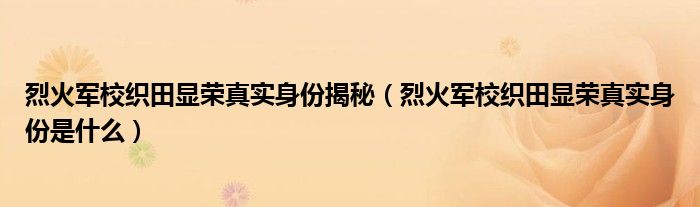 大家好,小育來為大家講解下。烈火軍校織田顯榮真實身份揭秘,烈火軍校織田顯榮真實身份是什么很多人還不知道,現(xiàn)在讓我們一起來看看吧!