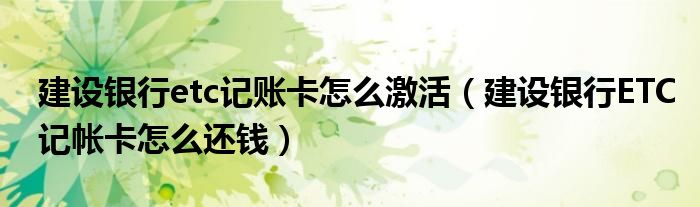 大家好,小育來為大家講解下。建設(shè)銀行etc記賬卡怎么激活,建設(shè)銀行ETC記帳卡怎么還錢很多人還不知道,現(xiàn)在讓我們一起來看看吧!