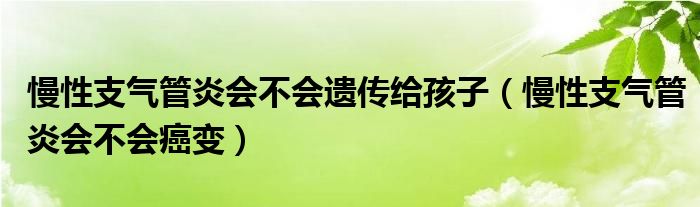 大家好,知識小編來為大家解答以上的問題。慢性支氣管炎會不會遺傳給孩子,慢性支氣管炎會不會癌變很多人還不知道,現(xiàn)在讓我們一起來看看吧!