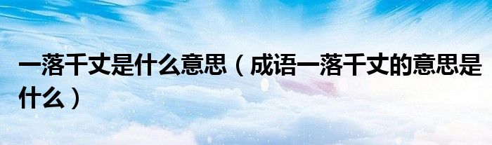 大家好,伊人來為大家解答以上問題。一落千丈是什么意思,成語一落千丈的意思是什么很多人還不知道,現(xiàn)在讓我們一起來看看吧!