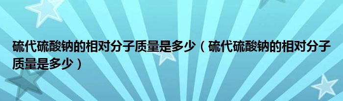摘要大家好,小育來為大家講解下。硫代硫酸鈉的相對(duì)分子質(zhì)量是多少,硫代硫酸鈉的相對(duì)分子質(zhì)量是多少很多人還不知道,現(xiàn)在讓我們一起來看看吧!