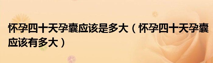 大家好,知識(shí)小編來(lái)為大家解答以上的問(wèn)題。懷孕四十天孕囊應(yīng)該是多大,懷孕四十天孕囊應(yīng)該有多大很多人還不知道,現(xiàn)在讓我們一起來(lái)看看吧!