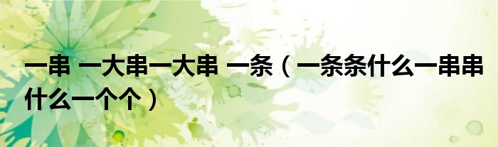 大家好,小育來為大家講解下。一串 一大串一大串 一條,一條條什么一串串什么一個(gè)個(gè)很多人還不知道,現(xiàn)在讓我們一起來看看吧!