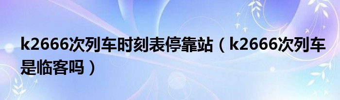 大家好,小育來為大家講解下。k2666次列車時刻表停靠站,k2666次列車是臨客嗎很多人還不知道,現(xiàn)在讓我們一起來看看吧!