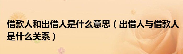 大家好,小育來為大家講解下。借款人和出借人是什么意思,出借人與借款人是什么關(guān)系很多人還不知道,現(xiàn)在讓我們一起來看看吧!