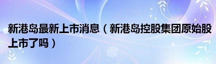 大家好,小育來為大家講解下。新港島最新上市消息,新港島控股集團原始股上市了嗎很多人還不知道,現(xiàn)在讓我們一起來看看吧!