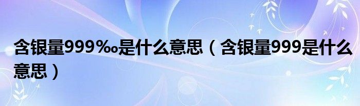 大家好,小育來為大家講解下。含銀量999‰是什么意思,含銀量999是什么意思很多人還不知道,現(xiàn)在讓我們一起來看看吧!