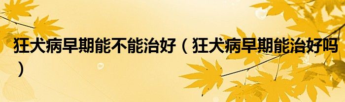 大家好,知識(shí)小編來(lái)為大家解答以上的問(wèn)題??袢≡缙谀懿荒苤魏?,狂犬病早期能治好嗎很多人還不知道,現(xiàn)在讓我們一起來(lái)看看吧!