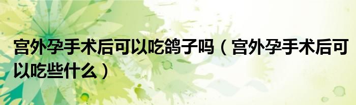 摘要大家好,知識(shí)小編來為大家解答以上的問題。宮外孕手術(shù)后可以吃鴿子嗎,宮外孕手術(shù)后可以吃些什么很多人還不知道,現(xiàn)在讓我們一起來看看吧!