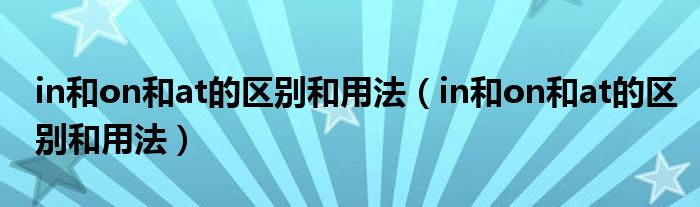 大家好,小育來為大家講解下。in和on和at的區(qū)別和用法,in和on和at的區(qū)別和用法很多人還不知道,現(xiàn)在讓我們一起來看看吧!