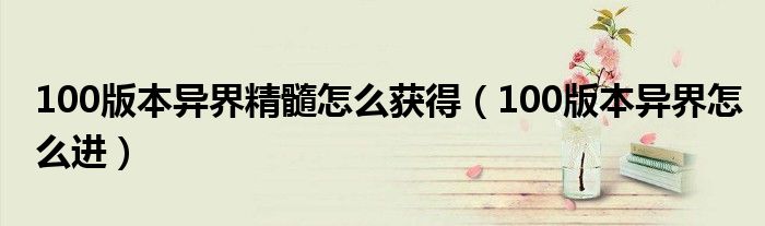 大家好,小育來(lái)為大家講解下。100版本異界精髓怎么獲得,100版本異界怎么進(jìn)很多人還不知道,現(xiàn)在讓我們一起來(lái)看看吧!
