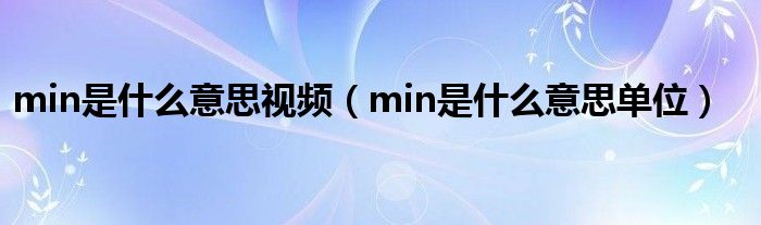 大家好,小育來(lái)為大家講解下。min是什么意思視頻,min是什么意思單位很多人還不知道,現(xiàn)在讓我們一起來(lái)看看吧!