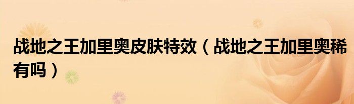 大家好,小育來為大家講解下。戰(zhàn)地之王加里奧皮膚特效,戰(zhàn)地之王加里奧稀有嗎很多人還不知道,現在讓我們一起來看看吧!