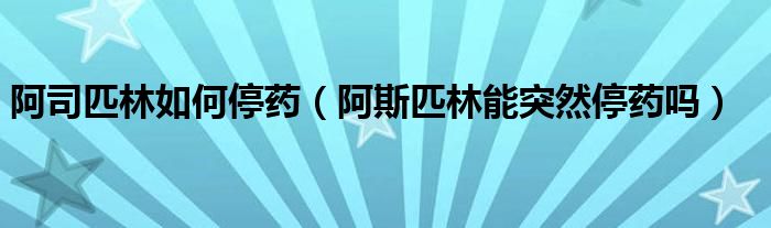 大家好,知識(shí)小編來(lái)為大家解答以上的問(wèn)題。阿司匹林如何停藥,阿斯匹林能突然停藥嗎很多人還不知道,現(xiàn)在讓我們一起來(lái)看看吧!