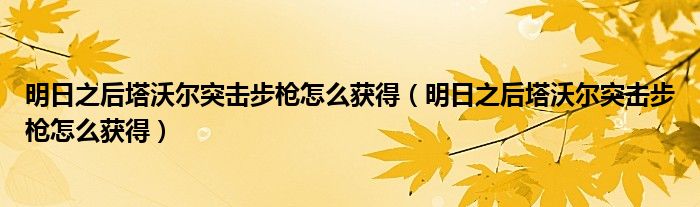 摘要大家好,小育來(lái)為大家講解下。明日之后塔沃爾突擊步槍怎么獲得,明日之后塔沃爾突擊步槍怎么獲得很多人還不知道,現(xiàn)在讓我們一起來(lái)看看吧!