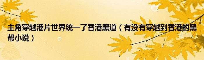 摘要大家好,小育來為大家講解下。主角穿越港片世界統(tǒng)一了香港黑道,有沒有穿越到香港的黑幫小說很多人還不知道,現(xiàn)在讓我們一起來看看吧!1、