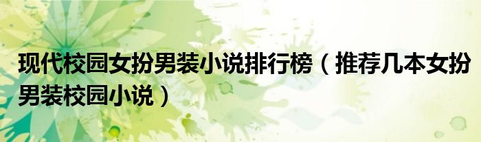 大家好,小育來(lái)為大家講解下。現(xiàn)代校園女扮男裝小說(shuō)排行榜,推薦幾本女扮男裝校園小說(shuō)很多人還不知道,現(xiàn)在讓我們一起來(lái)看看吧!