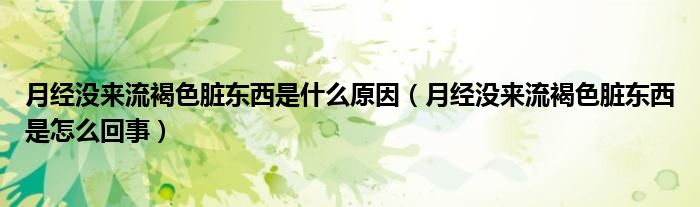 摘要大家好,知識(shí)小編來為大家解答以上的問題。月經(jīng)沒來流褐色臟東西是什么原因,月經(jīng)沒來流褐色臟東西是怎么回事很多人還不知道,現(xiàn)在讓我們一