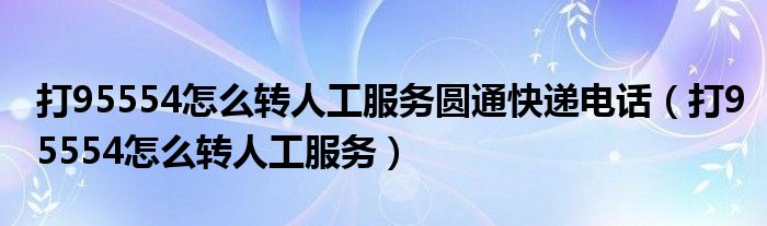 大家好,小育來為大家講解下。打95554怎么轉(zhuǎn)人工服務(wù)圓通快遞電話,打95554怎么轉(zhuǎn)人工服務(wù)很多人還不知道,現(xiàn)在讓我們一起來看看吧!