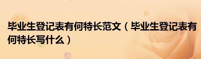 大家好,小育來為大家講解下。畢業(yè)生登記表有何特長范文,畢業(yè)生登記表有何特長寫什么很多人還不知道,現(xiàn)在讓我們一起來看看吧!