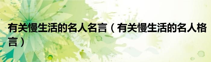 大家好,小育來為大家講解下。有關(guān)慢生活的名人名言,有關(guān)慢生活的名人格言很多人還不知道,現(xiàn)在讓我們一起來看看吧!