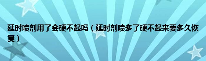 摘要大家好,知識(shí)小編來(lái)為大家解答以上的問(wèn)題。延時(shí)噴劑用了會(huì)硬不起嗎,延時(shí)劑噴多了硬不起來(lái)要多久恢復(fù)很多人還不知道,現(xiàn)在讓我們一起來(lái)看看