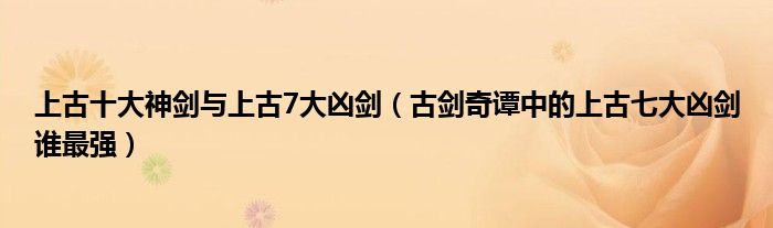 摘要大家好,小育來為大家講解下。上古十大神劍與上古7大兇劍,古劍奇譚中的上古七大兇劍誰最強很多人還不知道,現(xiàn)在讓我們一起來看看吧!1、天