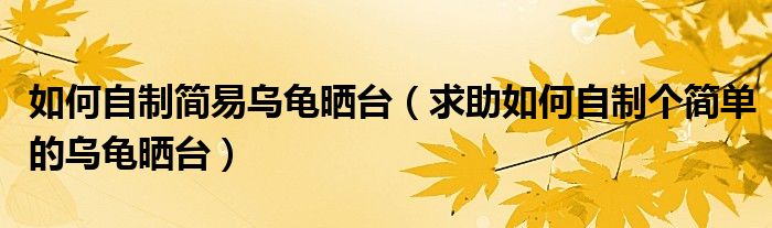 大家好,小育來為大家講解下。如何自制簡易烏龜曬臺(tái),求助如何自制個(gè)簡單的烏龜曬臺(tái)很多人還不知道,現(xiàn)在讓我們一起來看看吧!