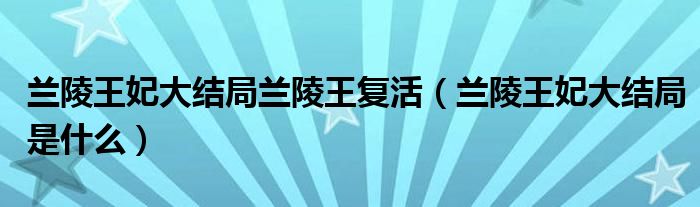 大家好,小育來為大家講解下。蘭陵王妃大結(jié)局蘭陵王復(fù)活,蘭陵王妃大結(jié)局是什么很多人還不知道,現(xiàn)在讓我們一起來看看吧!
