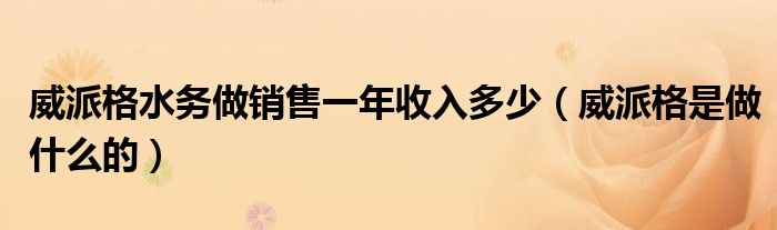 大家好,小育來為大家講解下。威派格水務(wù)做銷售一年收入多少,威派格是做什么的很多人還不知道,現(xiàn)在讓我們一起來看看吧!