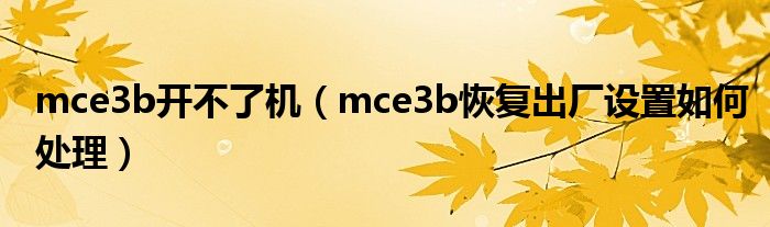 大家好,小育來為大家講解下。mce3b開不了機,mce3b恢復出廠設置如何處理很多人還不知道,現(xiàn)在讓我們一起來看看吧!